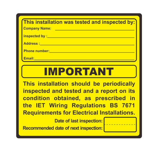 Electrical Safety Periodic Inspection Test Stickers