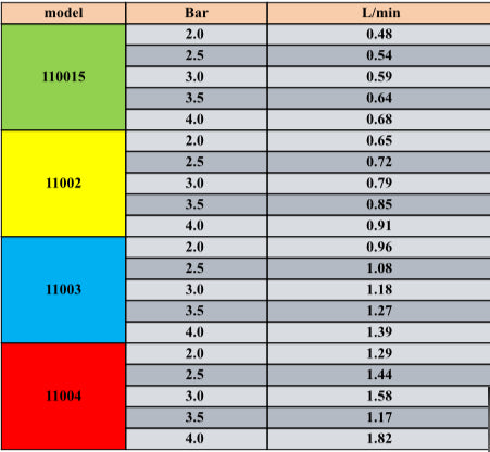 All Nozzles Available are 110 degree spray angle and the flow rates are shown in the last photo within the chart